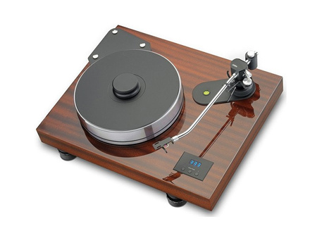 Eine Rückkehr zu den Klassikern, dem großen, schweren Plattenspieler mit 12-Arm der neuen Generation PJ 12ccEVO, so lässt sich die Einführung dieses Plattenspielers in das Pro-Ject Sortiment beschreiben. Der 5,7 kg schwere Aluminiumteller (30 cm Durchmesser), der mit Vinyl - aus in mehreren Schichten gepressten Vinylplatten - bespannt ist, ist auf einem invertierten Keramiklager gelagert und wird, wie beim Modell RPM 10, zusätzlich durch einen Magneten ergänzt. Der zweite Ring - der Magnet - sitzt auf der Basis des Plattentellers und erzeugt einen magnetischen Polstereffekt, der das Drehen des Plattentellers erleichtert. Im Sockel ist ein elektronischer Geschwindigkeitsregler Speed Box SE eingebaut. Mit einer einzigen Taste kann der Plattenteller eingeschaltet, in der Drehzahl gesenkt oder erhöht werden. Der gewählte Wert kann auf dem alphanumerischen Display abgelesen werden.Der gesamte Plattenteller steht auf Füßen aus Aluminiumwellen, die durch Magnete entkoppelt sind. Der obere Teil des Beins wurde zusätzlich mit Sorbothane entkoppelt. Der wichtigste Vermögenswert ist jedoch der Arm der neuen Generation mit der Bezeichnung PJ 12ccEVO.Der Arm besteht aus Kohlefaser und ist in eine solide Basis eingelassen - die Halterung, an der die Lager befestigt sind. Das Gegengewicht ist ebenfalls ein neues mechanisches Element - es ist mit einer Sorbothane-Polsterung versehen - und ermöglicht eine sehr präzise Einstellung des Drucks entsprechend der Skala auf dem Kunststoffring des Gegengewichts. Die Acrylabdeckung, das Netzteil und das PJ Connect It Phono DIN5-RCA C-Signalkabel gehören zur Grundausstattung des Plattenspielers.