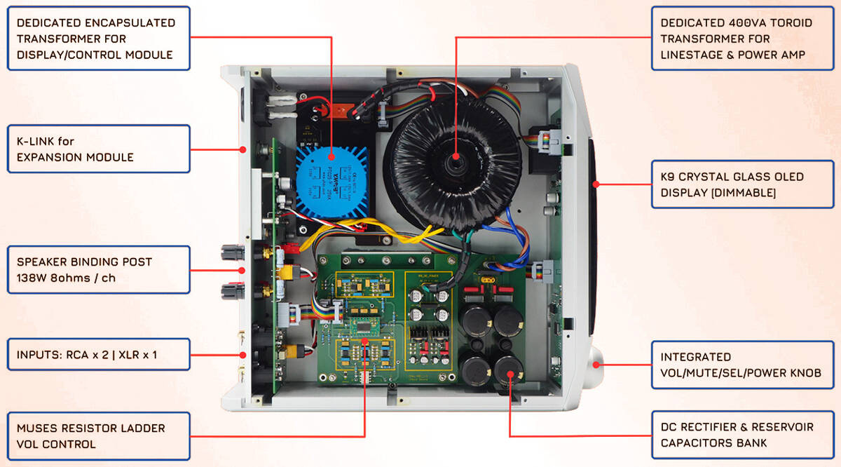 • Dual-Mono-Design mit seitlichem EXICON-MOSFET-Verstärker, bekannt für ultraschnelle und dynamische Reaktion